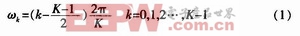 式(1)中,k为第k信道的归一化中心角频率;K为划分信道数。图1给出对应k=8时,实信道的频谱分配情况。需要指出的是由于实信号的频谱是对称的,所以只有4个独立的信道。