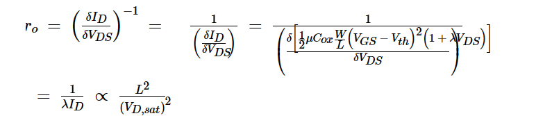 当考虑到饱和时I-V曲线的斜率由通道长度调制引起时,ro和λ之间的关系是有意义的。等式4还告诉我们: