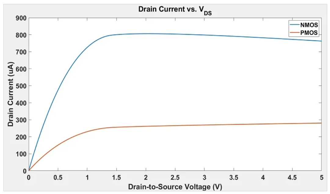 让我们看一下图2中的图。我们首先在之前的一篇关于MOSFET结构和操作的文章中看到了这个图,它帮助我们比较了NMOS和PMOS晶体管的漏极电流。