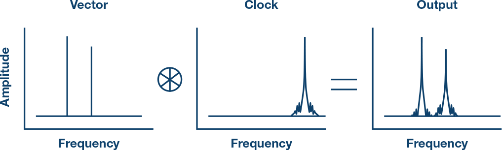 DAC时钟是DAC中产生相位噪声的首要原因。此时钟决定何时发送下一样本,故相位(或时序)中的任何噪声都会直接影响输出的相位噪声,如图3所示。此过程可以视作各相继离散值与一个矩形函数相乘,其时序由时钟定义。在频域中,乘法转换为卷积运算。结果,期望的频谱被时钟相位噪声所破坏,如图4所示。但是,确切的关系并不是显而易见的。下面将给出简明推导。