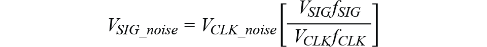 根据信号频率与时钟频率之比,相对于载波的噪声放大或缩小。信号频率每降低一半,噪声改进6 dB。研究几何图像可知这是合理的,因为下面的三角形会变得更尖锐,垂直边会缩小。还应注意,如果噪声以相同幅度提高,则提高时钟幅度不会改善相位噪声。