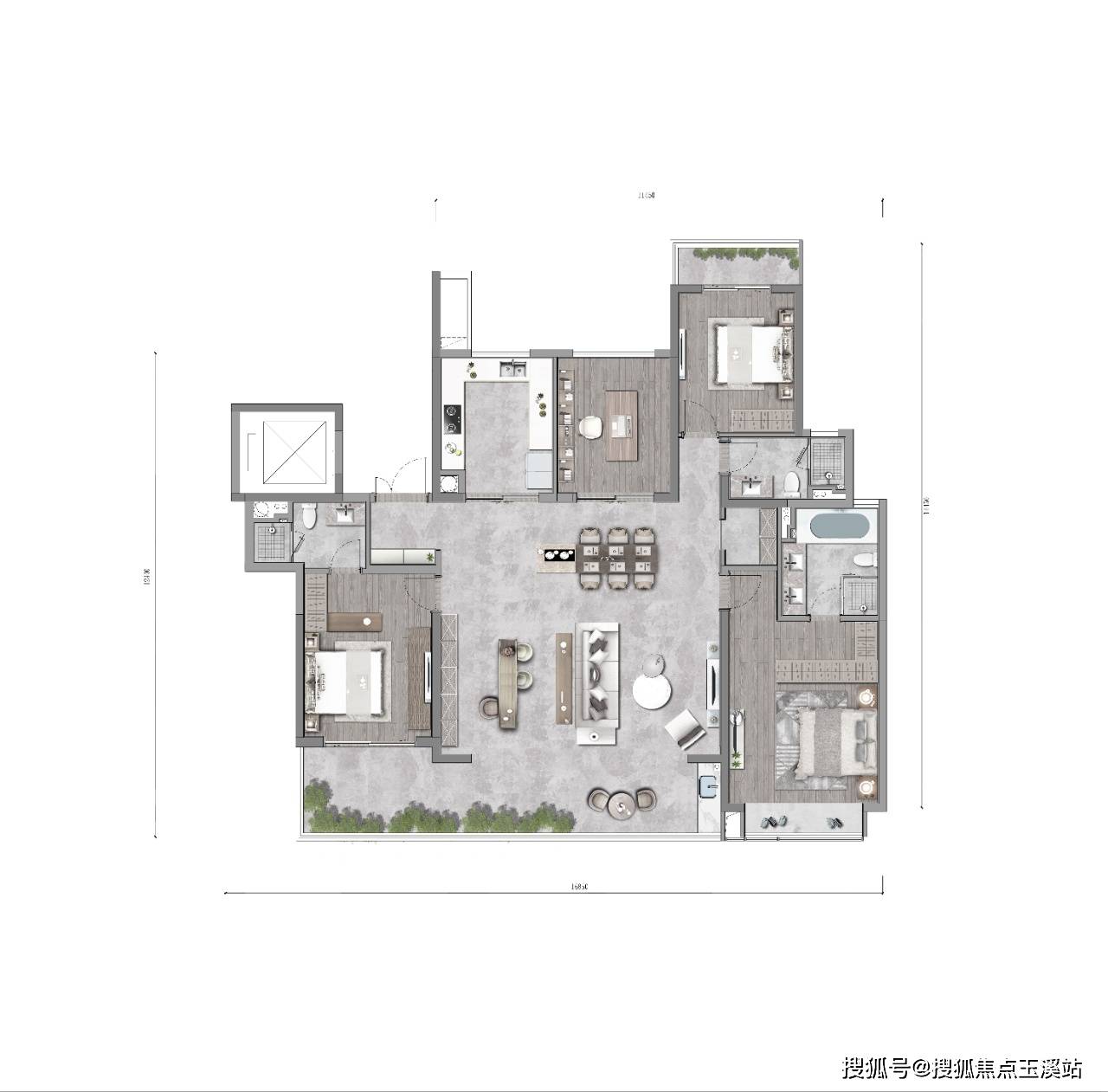 以198平方米的户型为例,鳳起蘭庭将绿城对空间美学的理解体现得淋漓尽致。该户型采用经典的四房两厅三卫设计,南北通透,动静分区合理。约7米宽的横厅设计,配合全景落地窗,让室内采光充足,视野开阔。主卧套房设计,配备独立衣帽间和豪华卫浴,私密性极佳。厨房采用中西分厨设计,配备高端品牌厨电,满足现代家庭的烹饪需求。多功能书房可根据家庭需求灵活改造,彰显了户型设计的实用性与前瞻性。
